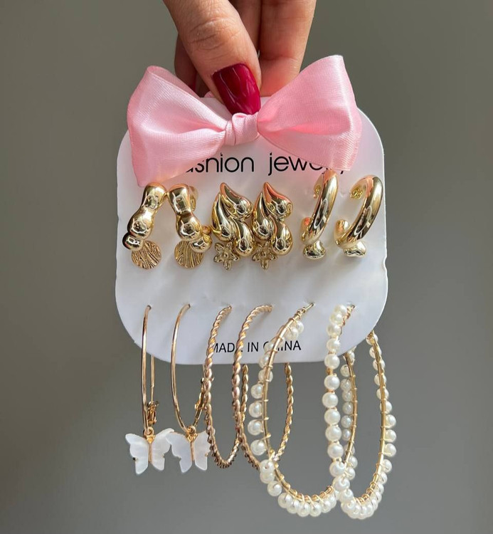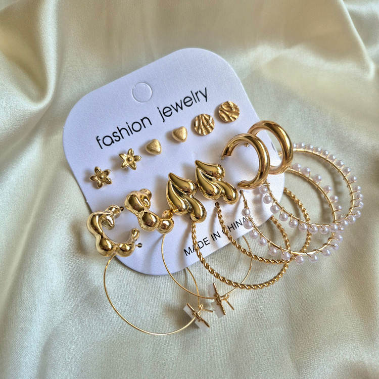 شامل ۹ جفت گوشواره خاص و ترند، با طراحی متنوع – از مرواریدی تا حلقهای و فانتزی 🤍💛