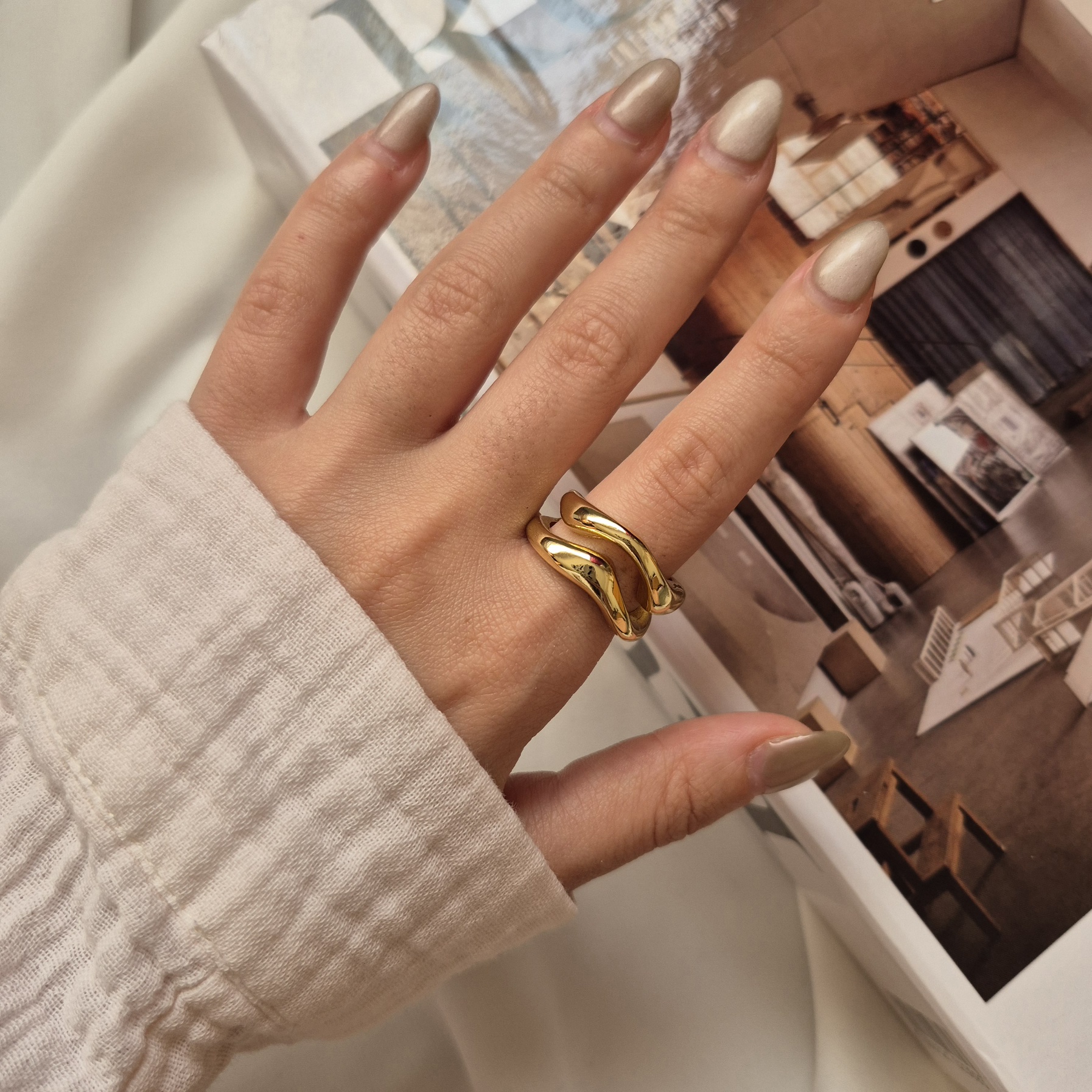 انگشتر دو لاین طلایی فشن